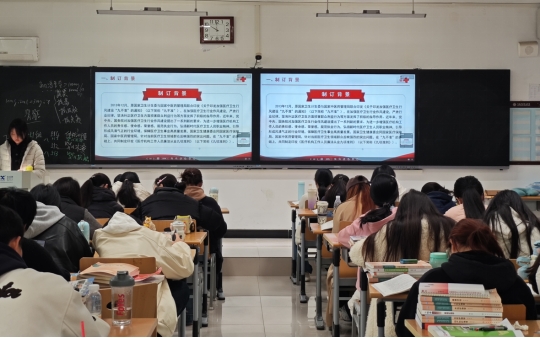 班会以“白衣不染尘,清风永相伴:医学生的廉洁自律与职业信仰”为主题,师生共同学习了《中国医学生誓词》《医疗机构从业人员行为规范》等内容。通过课堂交流悟廉,学生们深刻体会到廉政建设在医学教育中的特殊分量,对廉洁从医和职业道德有了更深层的理解。